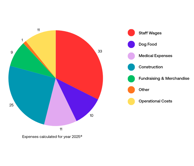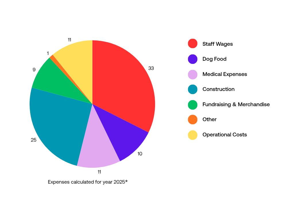 Medical Expenses: The expenses related to medical care of our dogs, spay & neuter program, and mobile clinic.