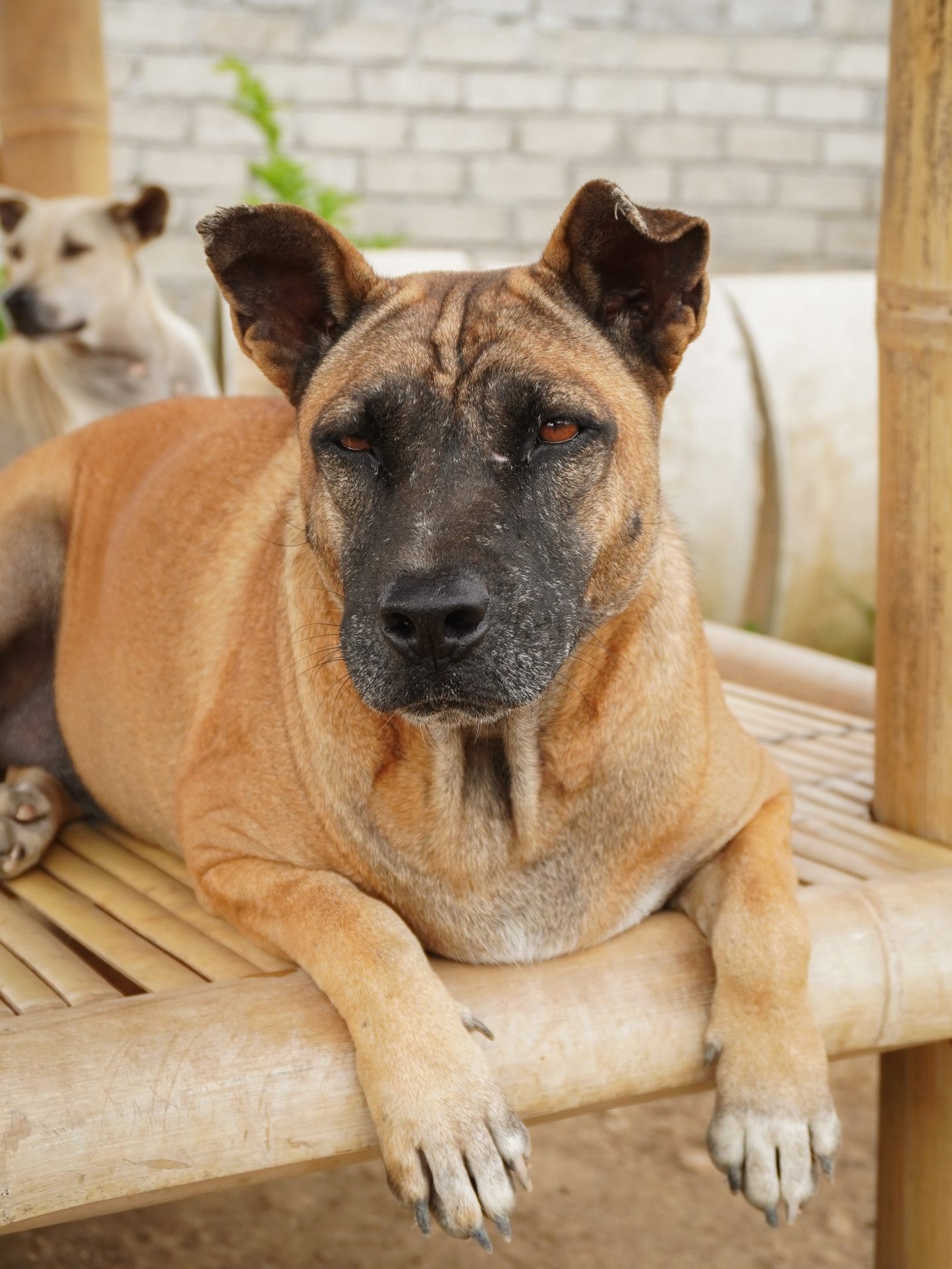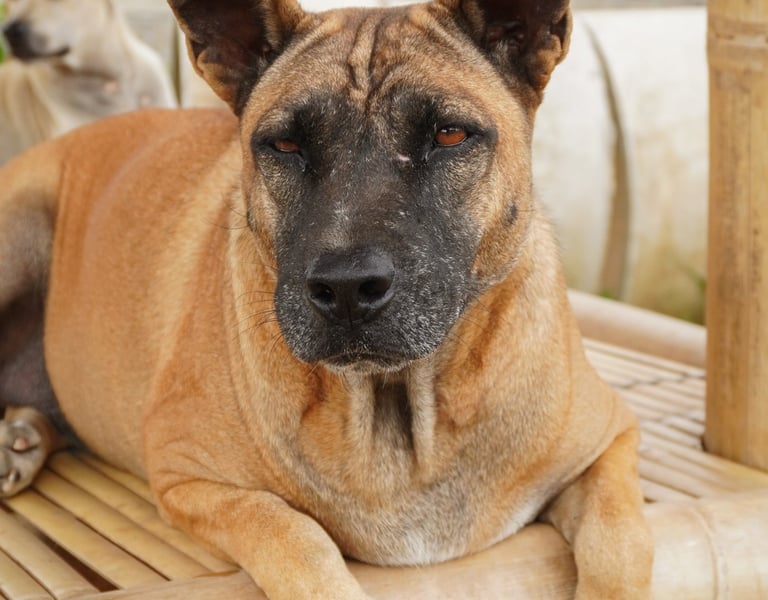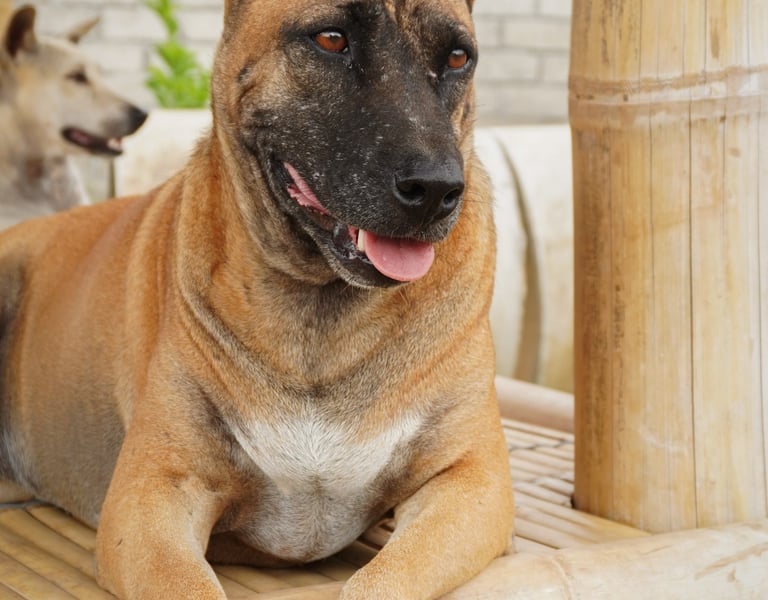 Stevie is a handsome, sturdy boy with a mature and stable presence. Don't let his large size fool you—he is a "low-energy" gentleman who prefers a peaceful life. He is very well-behaved around other dogs and is a friendly, mellow companion for humans.