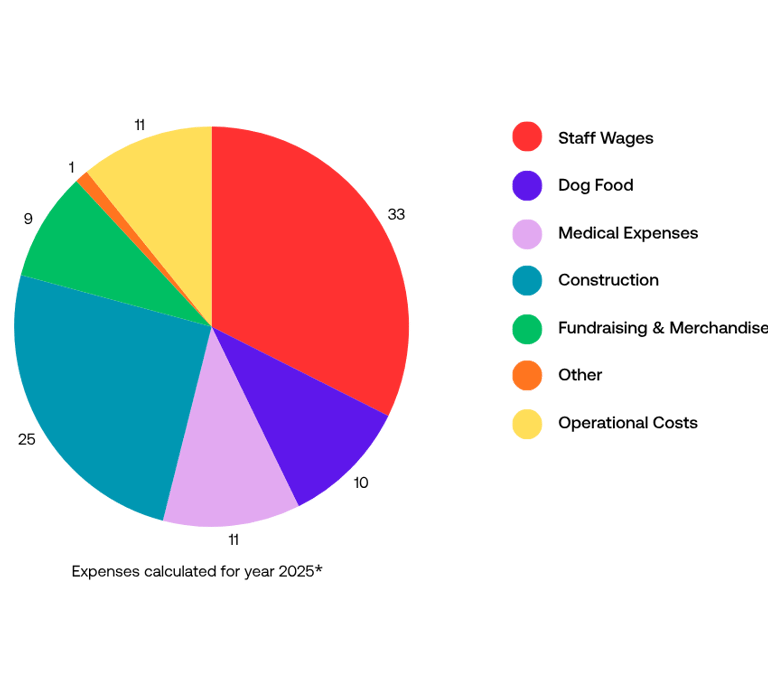 Medical Expenses: The expenses related to medical care of our dogs, spay & neuter program, and mobile clinic.